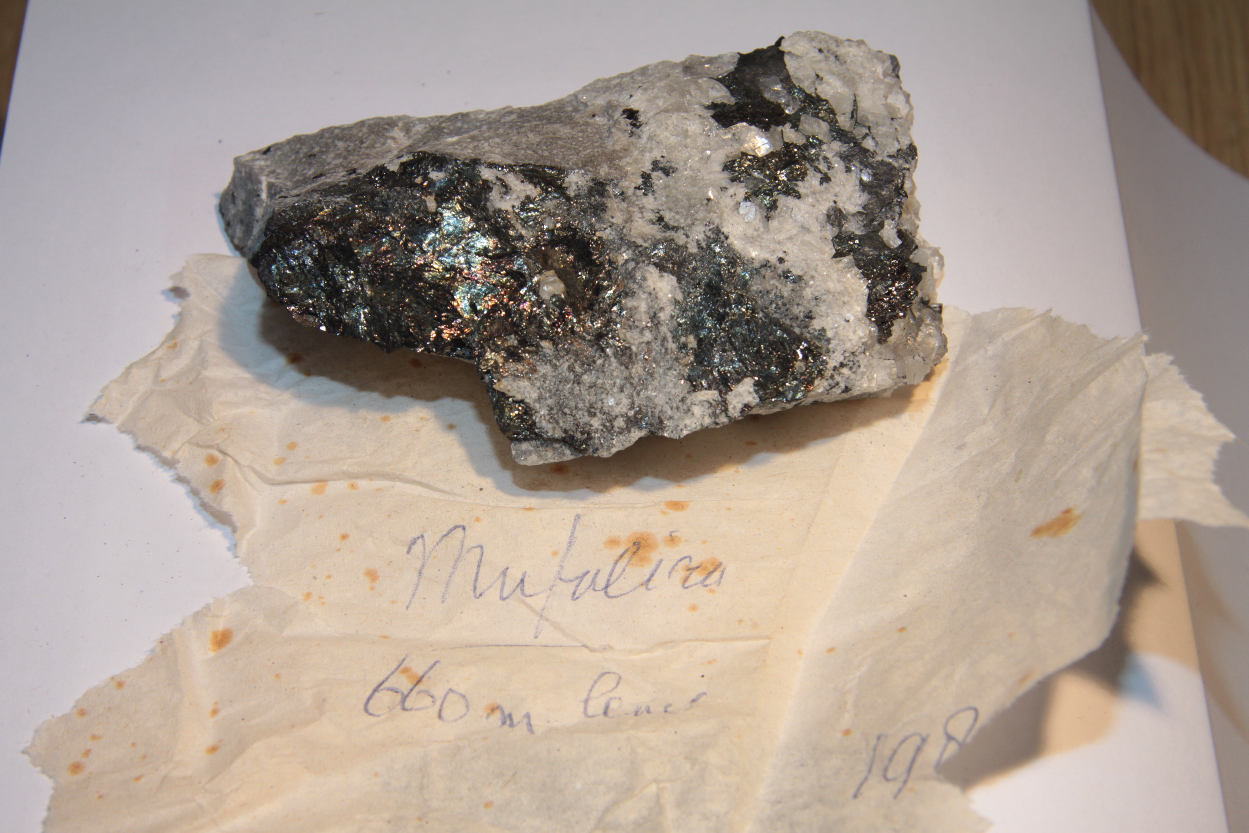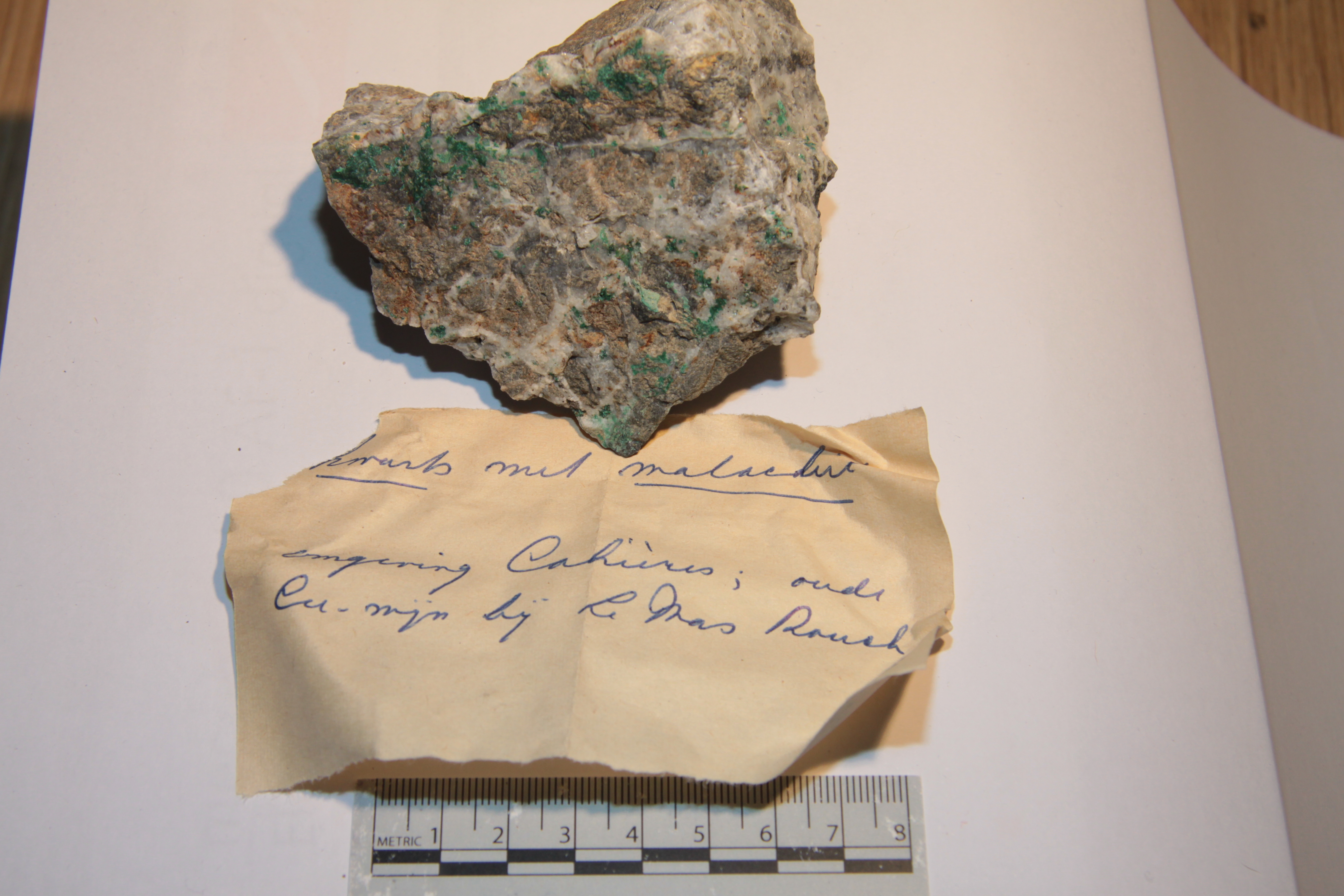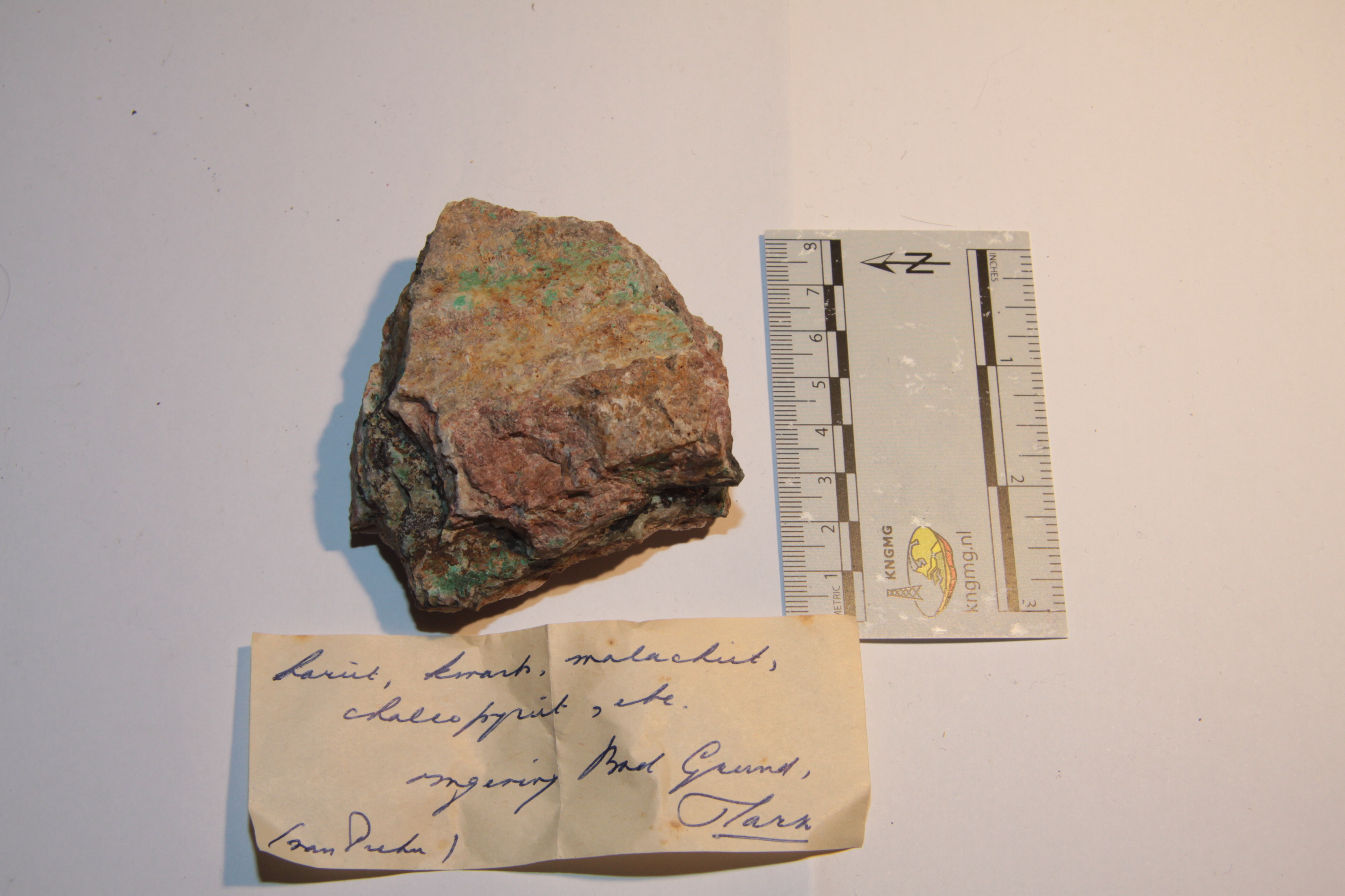 | Bariet, Kwarts, Malachiet, Chalcopyriet, enz. | |||